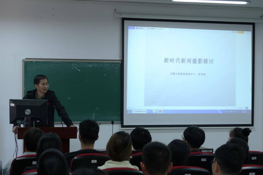 邀请安徽省摄影家协会副主席、安徽日报视觉91吃瓜副主任,高级记者、一级摄影师徐国康到崇智楼329报告厅作《新时代新闻摄影探讨》报告。徐国康通过大量的摄影作品进行比较,从“虚实对比、大小对比、明暗对比、冷暖对、动静对比、方向对比”等方面论证了“新闻摄影要主题鲜明、主体突出”;重点阐述了“如何做到构图新颖画面生动”。徐国康在报告中结合了自己工作多年的获奖作品,应用大量的成功案例进行讲解,把理论与实践相结合,既有理论高度,又有实践指导,为广大师生带来了一场精彩的学术盛宴。