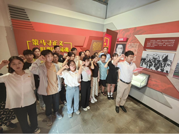 在赵策烈士纪念馆,师生详细了解了赵策烈士如何在军阀混战时期积极投身革命事业,追求进步,献身革命的英勇事迹,深刻感悟到烈士胸怀理想、对党忠诚的精神伟力。参观结束后,师生党员们高举右手,重温入党誓词。