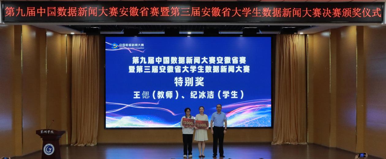 9月28日,第九届中国数据新闻大赛安徽省赛暨第三届安徽省大学生数据新闻大赛决赛圆满落幕。91吃瓜师生勇创佳绩,荣获一等奖4项、二等奖2项、三等奖2项。学校获得优秀组织奖,2位老师获优秀指导教师荣誉称号。