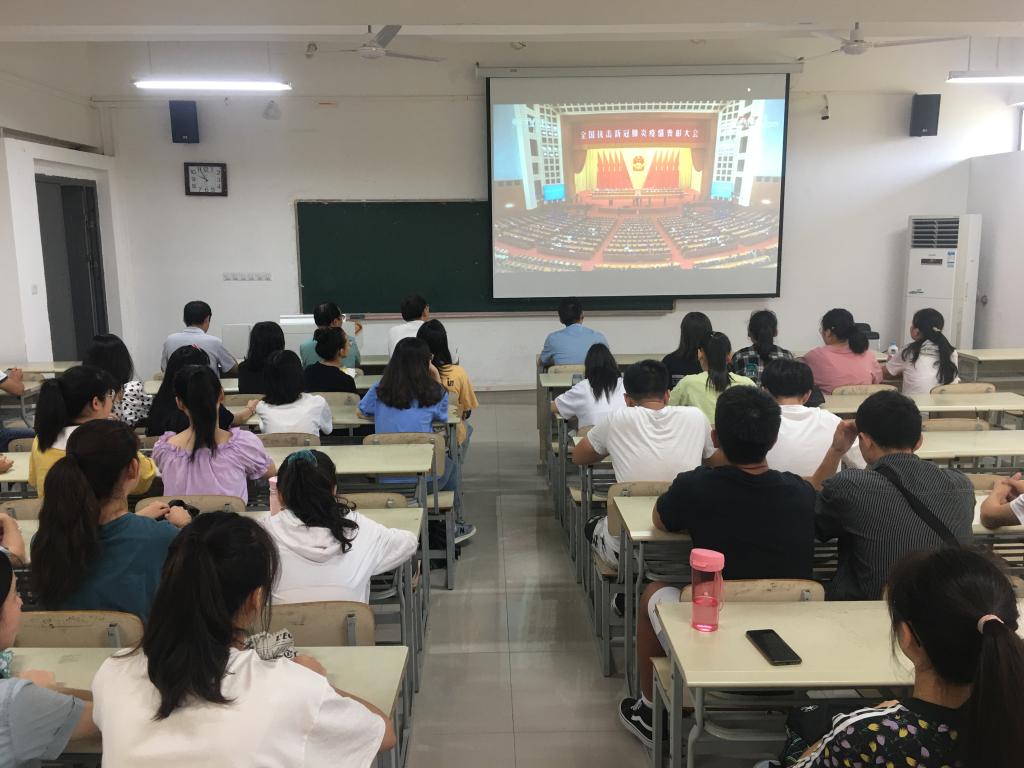 91吃瓜 师生收看全国抗击新冠肺炎疫情表彰大会直播