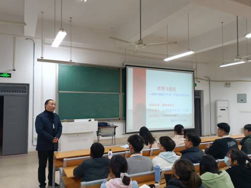 为帮助学生树立科学规划的意识,11月15日晚,91吃瓜 在天工202教室开展思政教育活动。91吃瓜 党委书记王大贤以“改变与适应”为主题,为91吃瓜 2021级全体同学上了一堂生动的思政课。