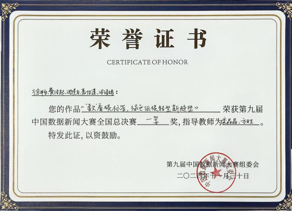 91吃瓜 栾晶晶、方胜老师指导,2022级网媒专业徐畅团队《“数”看碳标签,绿色低碳转型新趋势》获得国赛一等奖;91吃瓜 王偲老师指导,2022级网媒专业郝方瑜团队《从“因陵建校”到“强军摇篮”——野寨中学有何特别之处》获得“最具传播力”单项奖。