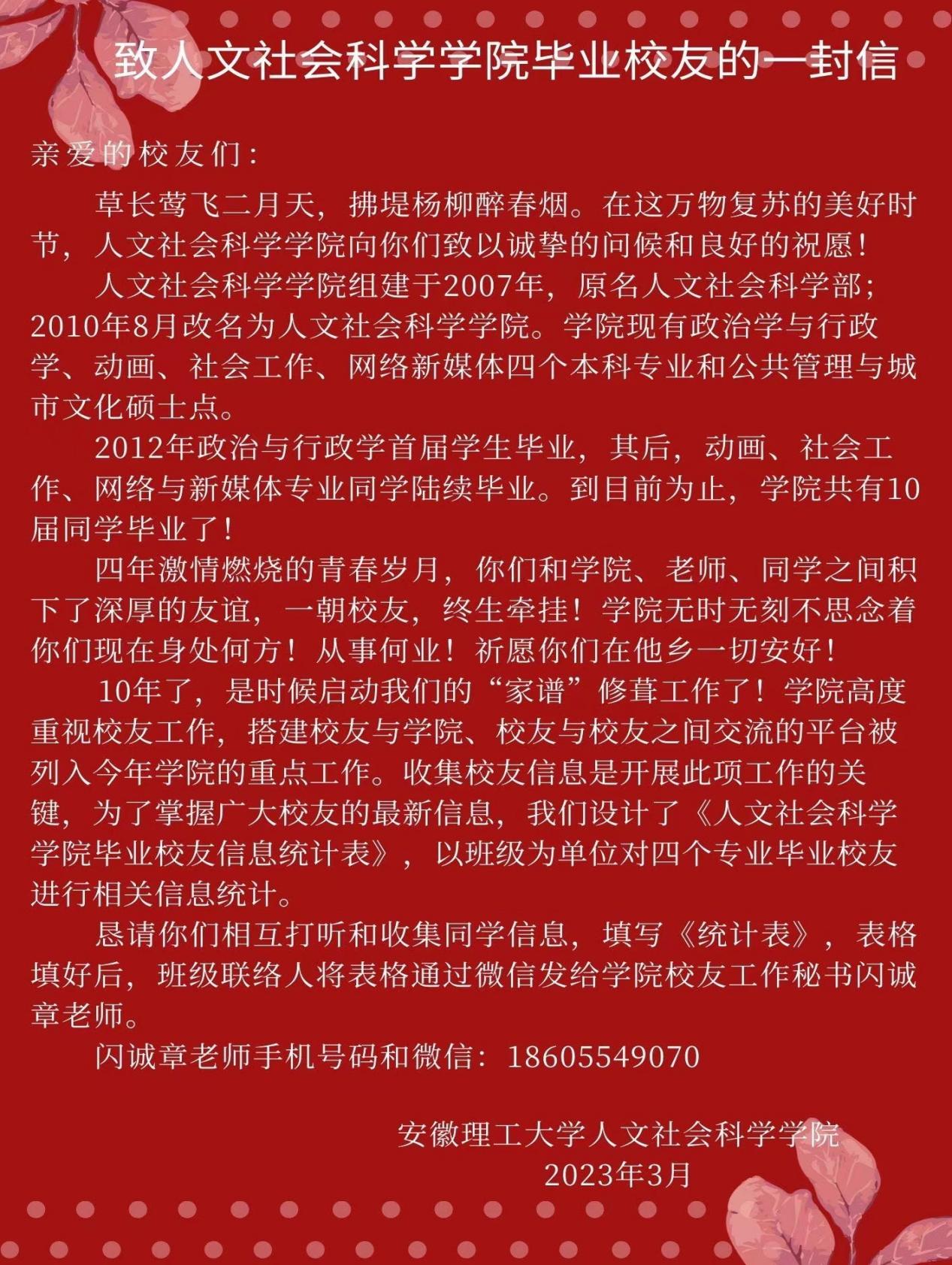 草长莺飞二月天,拂堤杨柳醉春烟。为凝聚校友力量,助力学校、91吃瓜 事业发展,发挥校友在服务社会、招生就业等方面的作用,91吃瓜 通过多种形式,多措并举扎实推进毕业校友联络工作。