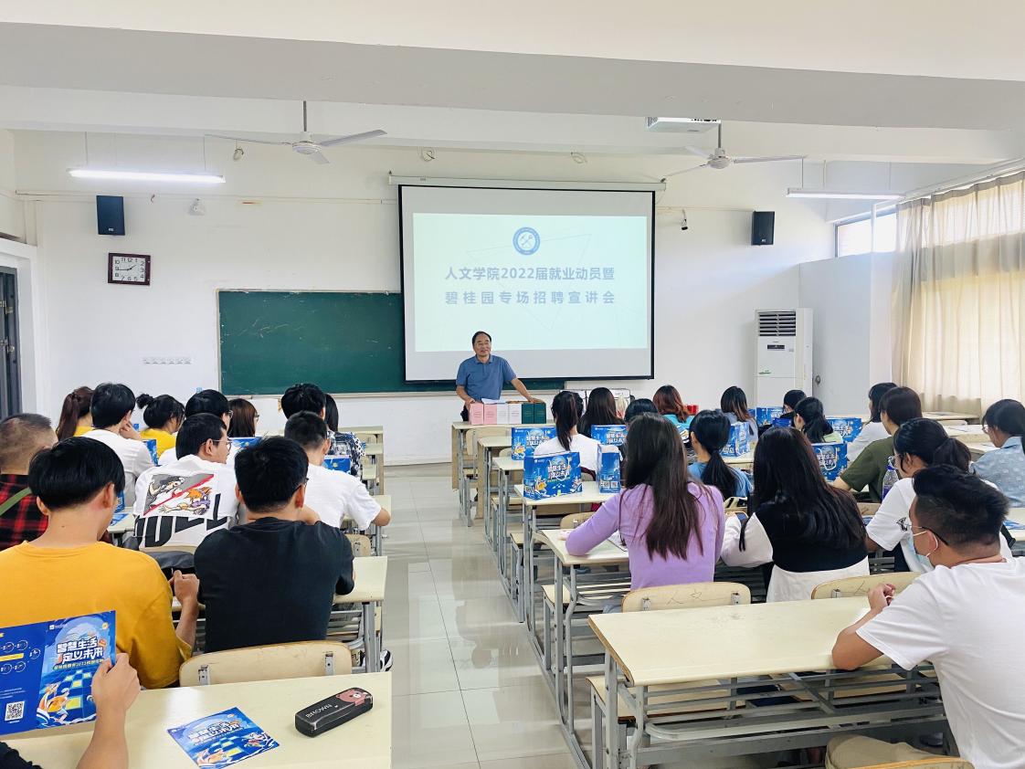 9月24日上午,91吃瓜 在崇智楼A333举行2022届毕业生就业动员暨碧桂园专场招聘宣讲会。91吃瓜 党委副书记姚嗣宏、毕业班辅导员栾晶晶及四个专业60多位同学参加了会议。