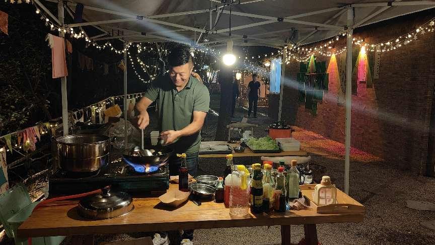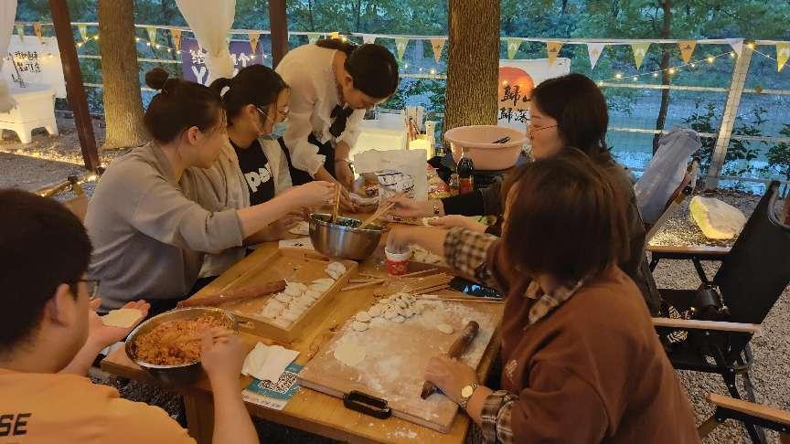 赛场外,其他教师齐聚在包饺子区,争先动手包饺子,大家其乐融融,欢声笑语不断,将职工平日的工作压力在活动中得到释放。