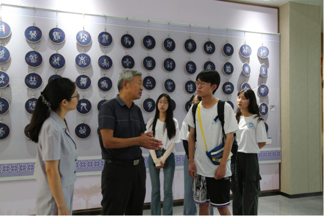 望江挑花不仅仅是一项传统的手工技艺,更是传统文化。2006年望江挑花成功进入省级代表性非物质文化遗产名录,2008年正式成为国家级代表性非物质文化遗产。为深入了解望江挑花的“前世今生”,7月15日上午,实践团队前往纺织服装新城,拜访望江挑花国家级非遗代表性传承人王世福老师。为了促进望江挑花的发展,王老师做了大量的保护和传承工作,编纂望江挑花工具书介绍挑花工艺,与服装厂合作推广挑花艺术,创建望江挑花展厅等,用挑花艺术家特有的敏锐思维、真挚的热情、灵巧的双手,探索出产、学、教相结合的新路。在采访中王世福老师特别提到:“望江挑花未来的发展需要依靠年轻人,望江挑花工艺急需设计人才,望江挑花的发展与传承离不开新鲜力量的注入,需要一代又一代的有志青年去传承,去创新,去发展。”