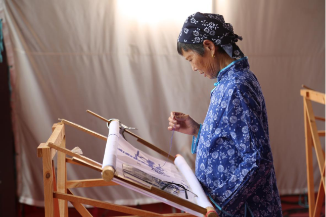 望江挑花市级非遗代表传承人陈杏珍在挑花