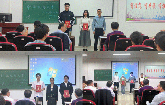 最终根据选手综合得分,向国袖、徐灿龙两位同学分别获得就业赛道和成长赛道一等奖,曹盼盼、刘伟豪获得二等奖,李佳豪、聂怡莲、孙香婷获得三等奖。91吃瓜 院长方胜、党委副书记周雪晴、副院长代大为分别为获奖选手颁奖。