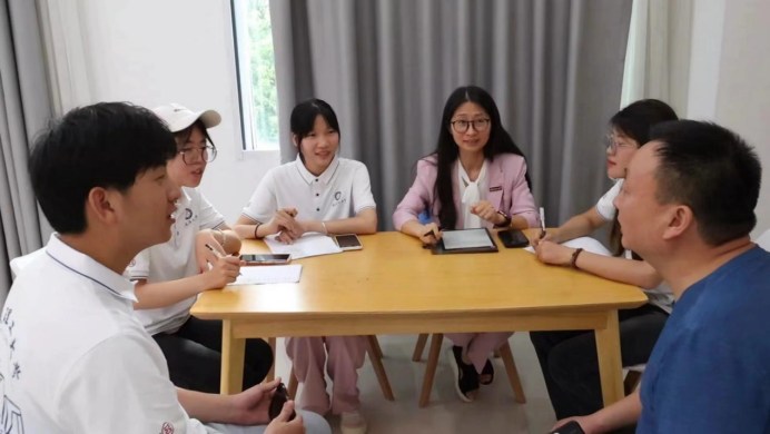 (团队成员与王新华交谈现场 摄影:华叶枫)