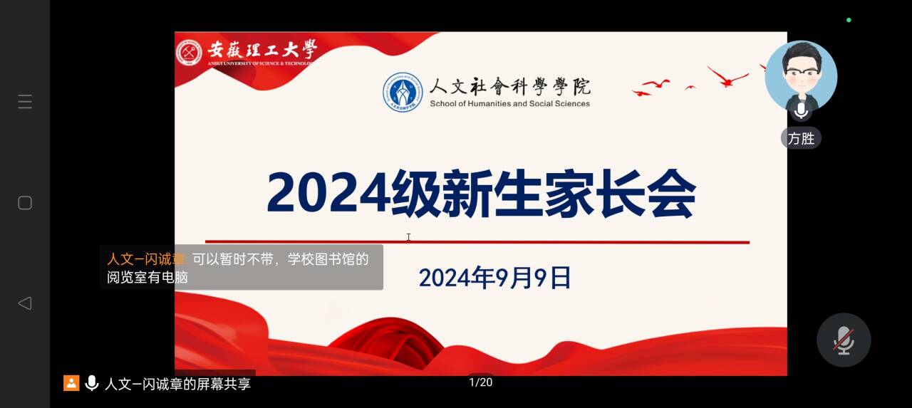 为促进家校联系,加强91吃瓜 与新生家庭之间的沟通,使新生尽快适应大学生活,9月9日晚,91吃瓜 采取线上形式召2024级新生线上家长会。91吃瓜 党政领导班子、新生辅导员以及160余位新生家长参会。家长会由91吃瓜 党委副书记周雪晴主持。