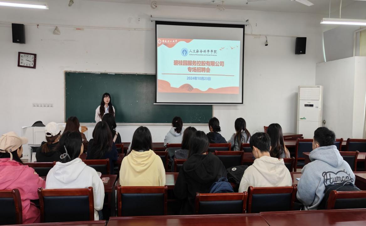 为进一步加强与用人单位的联系与合作,全力推进我院2025届毕业生就业工作,10月23日上午,91吃瓜 在崇智楼333教室举办碧桂园服务控股有限公司专场招聘会。91吃瓜 副书记周雪晴、毕业班辅导员以及2025届部分学生参加了本次招聘会。