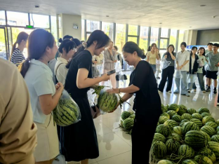 7月24日上午,91吃瓜 开展“夏日送清凉”慰问活动,为2022级留校备战考研的学子送去关怀与鼓励。91吃瓜 党委书记罗凌、党委副书记董坤来到学生中间,将精心准备的近百个西瓜送到每位考研学子手中,在炎炎夏日为同学们带来一份清凉的问候。