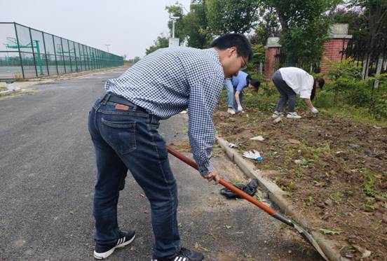 学生在卫生分包区清理杂草