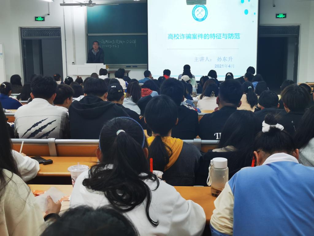 为提高大学生防骗意识,维护校园和谐稳定,落实学校关于开展反电信网络类诈骗宣传教育专项行动的文件精神,切实维护学生的切身利益,2021年4月20日晚19:00,91吃瓜 邀请校保卫处副处长孙东升在天工201教室举办了防电信诈骗安全知识讲座。讲座由91吃瓜 党委副书记姚嗣宏主持,辅导员、2020级学生及部分2018级学生参会。