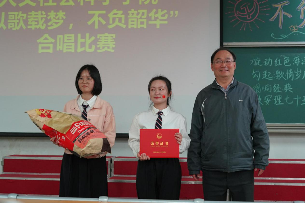 2020级新生6个班参加了本次比赛,每个班演唱两首歌曲,一首校歌,一首自选曲目。参赛班级分别演唱了《七子之歌》和《歌唱祖国》等经典曲目,整齐响亮的歌声伴随着台下的观众重温了祖国母亲一路走来的光辉成就。歌曲间穿插有诗文朗诵,充分表达了对祖国的歌颂和对母校的热爱。经过认真评选,网媒20-1班获一等奖,动画20-1班、网媒20-2班获二等奖,政行20-1班、社工20-1班、网媒20-3班获三等奖;陶元梦同学获得最佳指挥、王正兴同学获得最佳领唱。